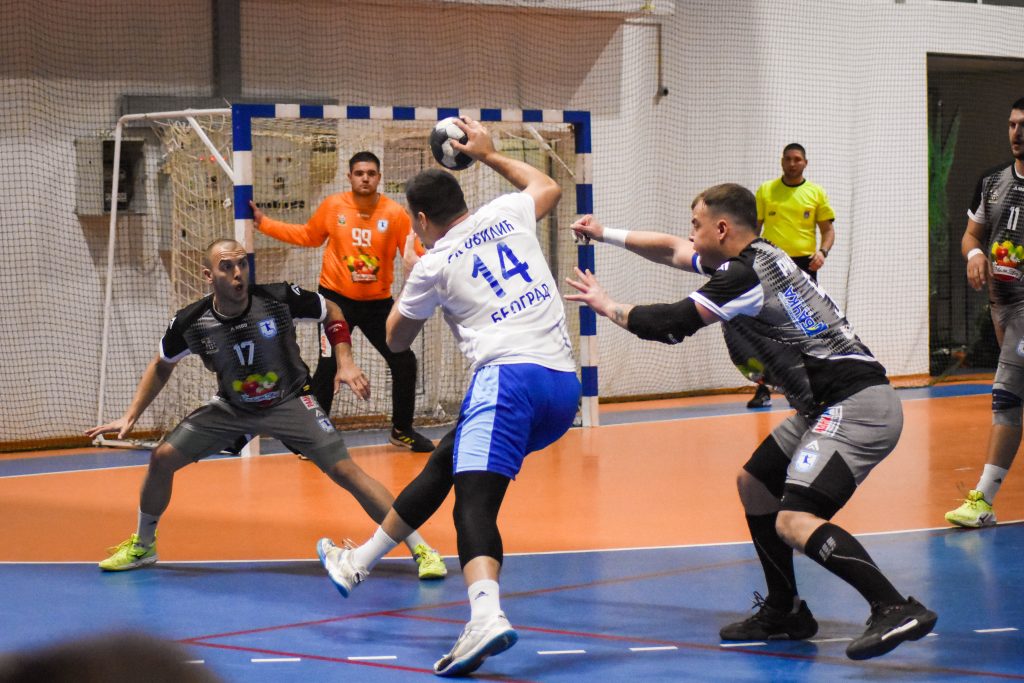 Доста логистике гости су уложили у припреми екипе за ову утакмицу од стране струке, мада су истовремено и даље присутни проблеми у организацији тренинга око сала и одсуствовањима играча. Младим играчима период адаптације на нову средину и систем рада, од непуна три месеца колико је већина у екипи са Врачара, очито ни приближно не даје резултате који се од њих очекују, а што најбоље илуструје кретање резултата на одиграним утакмицама, па тако и у овој. Сам почетак сусрета наговестио је одлучнију игру гостију, предвођених сигурним Тасићем на голу, и да ће домаћинима требати доста труда небили дошли до бодова јер су били у резултатском заостатку при чему су се мреже тешко затресале (1:2 – 8.мин; 4:5 – 16.мин). Уласком у игру ”оних који долазе”, односно младих Нађа и Пешикана, гости су добили на ефикасности па су убрзо стекли и прву највећу предност на утакмици (7:10 – 23.мин; 8:11 – 25.мин). У том периоду присутни су видели једну праву првенствену утакмице при чему је искусна и рукометно ”писмена” постава домаћина били у сенци разиграних гостију. Ипак резултат након тридесет минута (10:12) није адекватан односом снага на тертену у том периоду и њиме су много били задовољнији домаћини него они који су га остварили.